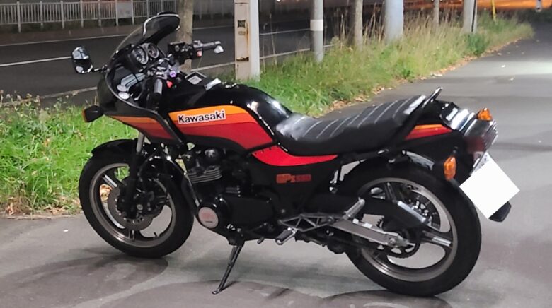 いざ跨がると自分には足付きや取り回し性がどうも厳しく、それなら空冷の中型GPz、しかも550なら約66馬力で多少速く、被らなく、面白いだろうと思ったのが買うきっかけの一つです。