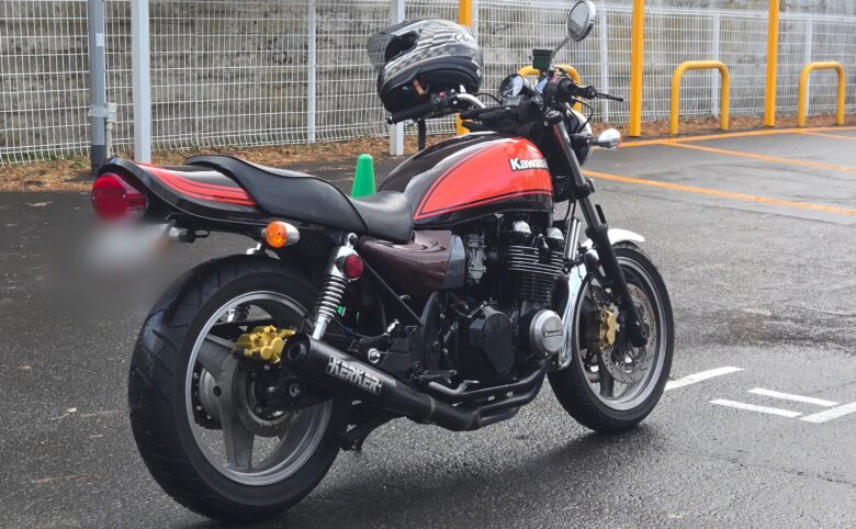 今まではPOSHのフェンダーレス&Z2テールランプ、純正テールカウル仕様でしたが、伸びやかなスタイリングになってこれもかっこいい。