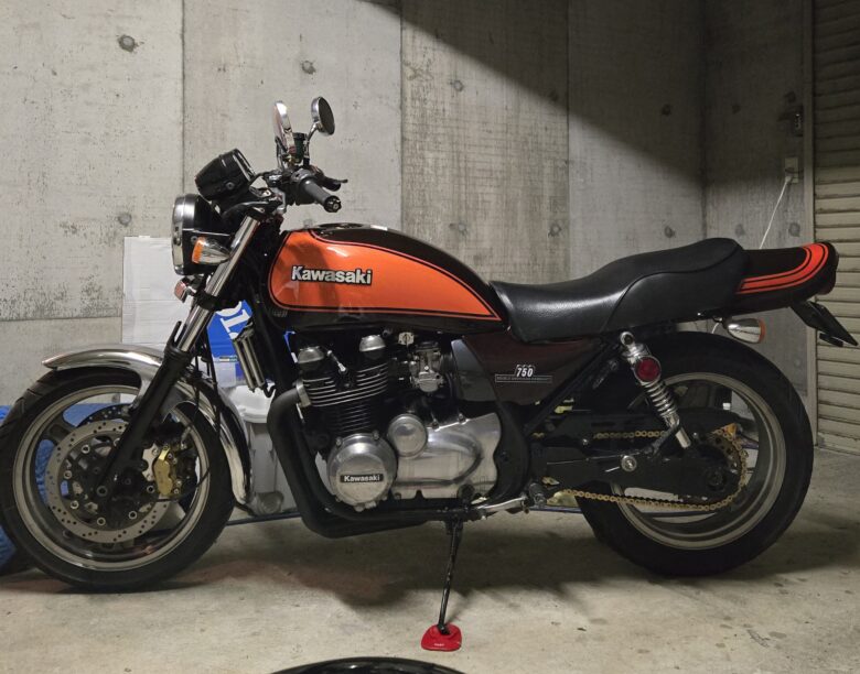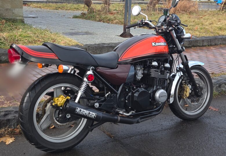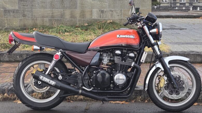 ゼファー750RSのルミナスウィンザーグリーン(緑玉虫)を付けていましたが、今回はゼファー750RS-D3 200台限定火の玉カラー、ドレミZ2テールカウル仕様へ。