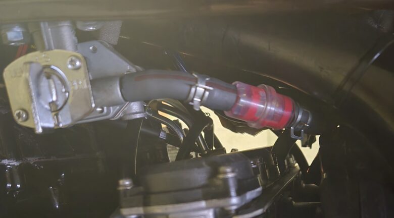 フィルター本体が透明なのでちゃんと燃料通っているか目視でも見えるし、キャブへの錆の流入を防いでくれるのでフィルターの取り付けをオススメします。マグネット付きで微細な鉄粉も取ってくれるらしい◎
