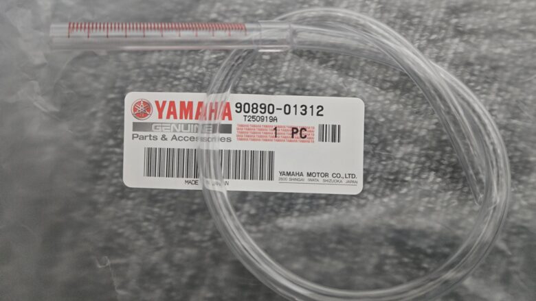 使い方は簡単でドレンを開け、コックをPRIにして車体を水平に傾けて真っ直ぐ正面から見ます。ガソリンが流れてきても途中にエアーが噛むのでホースを揺らしたりデコピンしたりして、エアーを抜いて下さい。
