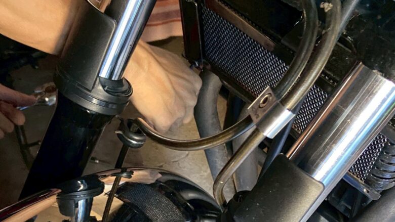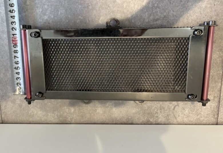 ちなみにゼファー400等と共用なので、ヤフオクやメルカリなどで”ゼファー400 オイルクーラーガード”と検索すると探しやすいです。